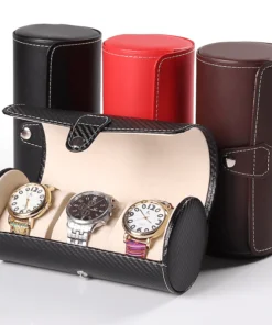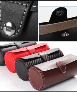 L’étui montres forme cylindrique rouge/noir est le moyen idéal pour ranger et protéger votre montre lorsque vous n’en avez pas besoin. Avec un extérieur en cuir souple pour le modèle rouge et en fibre de carbone pour le modèle noir, cet étui est à la fois résistant et esthétique. Il mesure 11 x 11 x 21,5 cm et pèse seulement 0,32 kg, ce qui le rend facile à transporter. Il peut contenir jusqu’à 3 montres de toutes tailles, jusqu’à 52 mm, grâce à sa fermeture à pression qui les maintient en place à l’intérieur de l’étui. Il est facilement glissable dans une valise, un sac à main et convient aux montres pour hommes, pour femmes et aux petits bijoux.